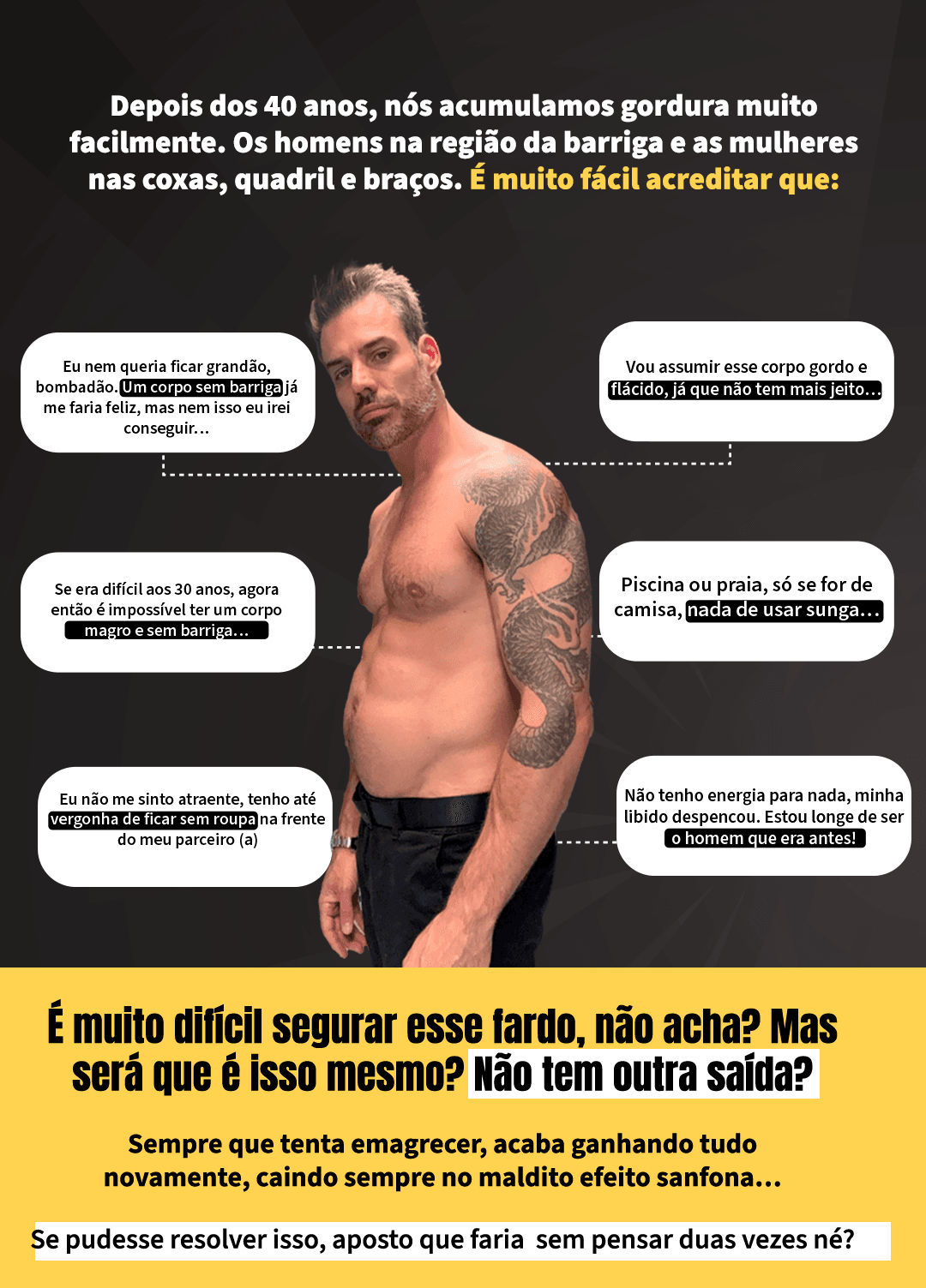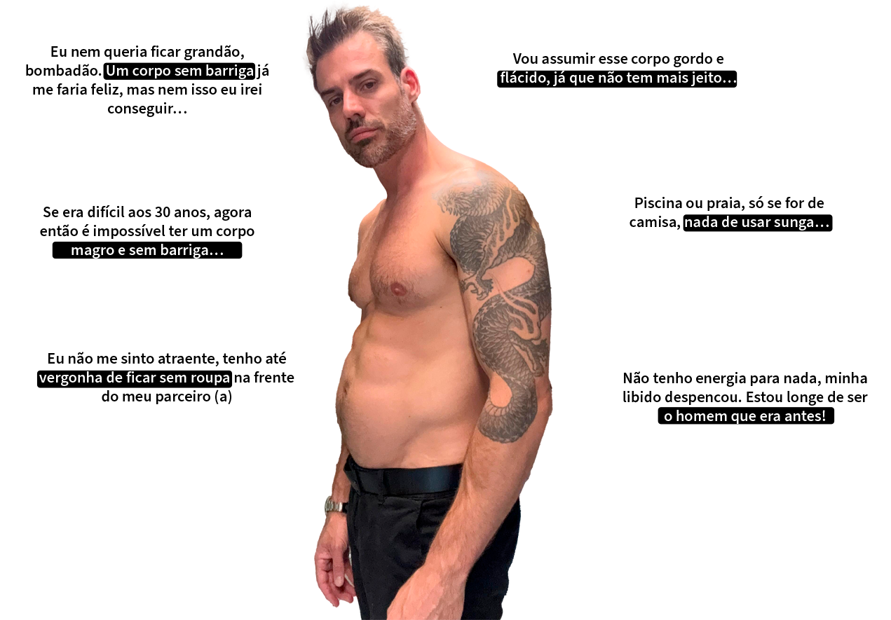 “Aos 40 anos eu acumulei uma barriga que pensei que não ia conseguir me livrar dela… Consegui e irei ajudar todo 40tão a conseguir desbloquear uma vida sem barriga 40+ também”